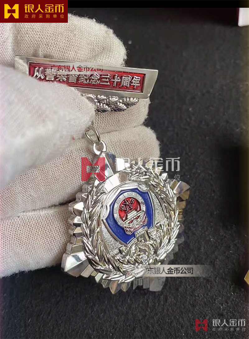 從警紀念章(公安勛章或警察勛章,也叫人民警察金盾獎章或金盾勛章),不僅是一件獎品,更是一份承載著榮譽與責任的象征,它猶如一面鏡子,映射出警察職業的崇高與莊嚴,也映射出每一位警察內心深處的信念與堅守。這款從警年限紀念章以金銀銅三色為主調分別代表不同入警時間,象征著警察職業的莊嚴與神圣。其造型獨特,融合了警徽、盾牌與時間的元素,警徽,代表著警察的身份與榮譽,每一次佩戴,都是對職責的堅守;盾牌,象征著保護與守護,是警察們面對危險時無畏前行的勇氣;而時間的流轉,則見證了警察們從青澀到成熟,從熱血到沉穩的蛻變。