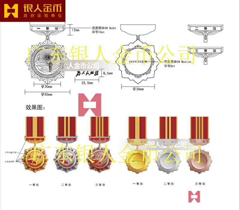 中共中央組織部、人力資源和社會保障部、國家公務員局2025年最新款標準最新版25款公務員一等功獎章、公務員二等功獎章、公務員三等功獎章和公務員獎勵證書(圖)-【制作規范】