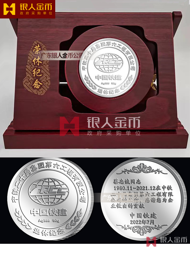 央企國企中鐵二十局集團公司職工員工榮譽退休紀念章(銀質純銀)【廣東省金幣公司】